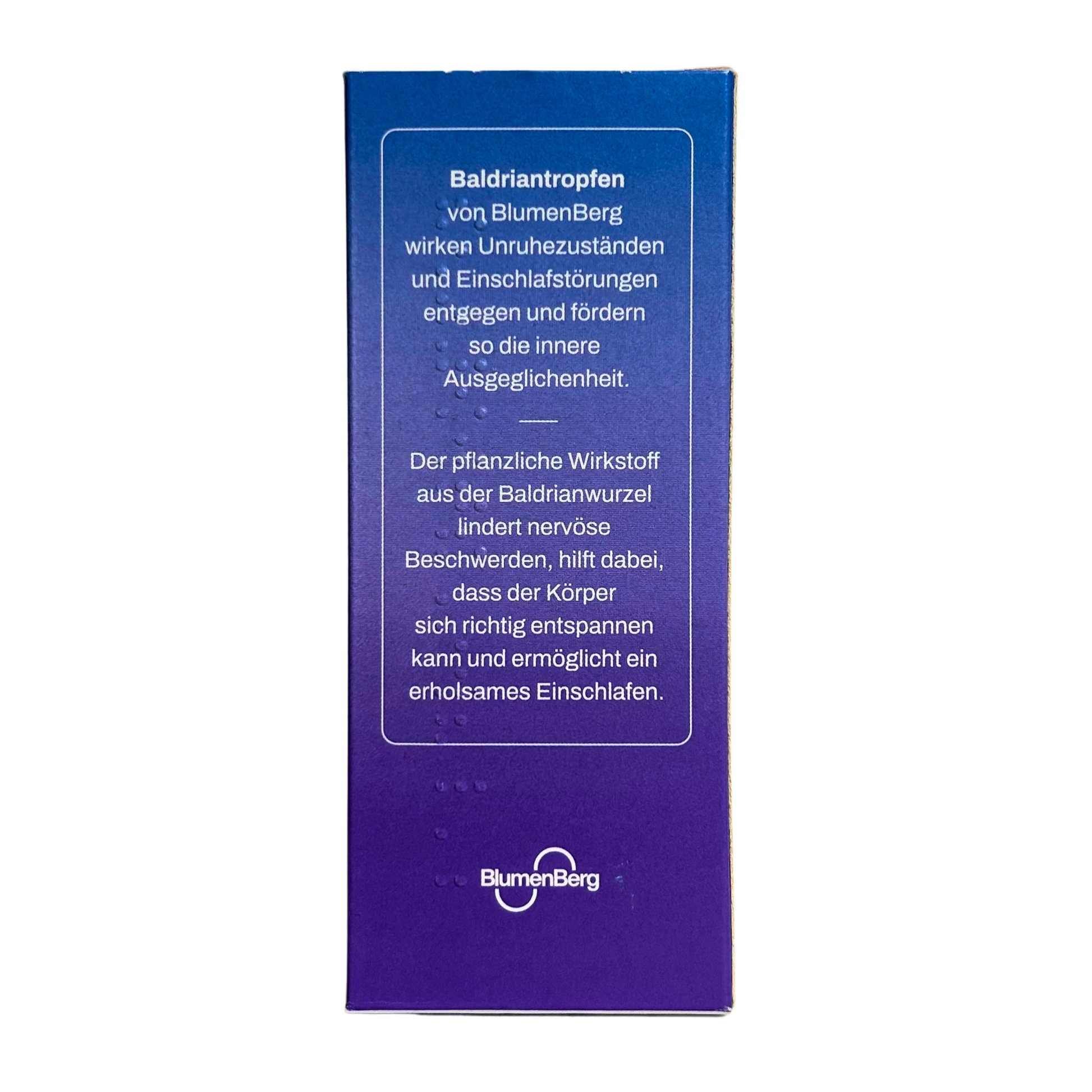 Baldriantropfen von BlumenBerg wirken Unruhezuständen und Einschlafstörungen entgegen und fördern so die innere Ausgeglichenheit.