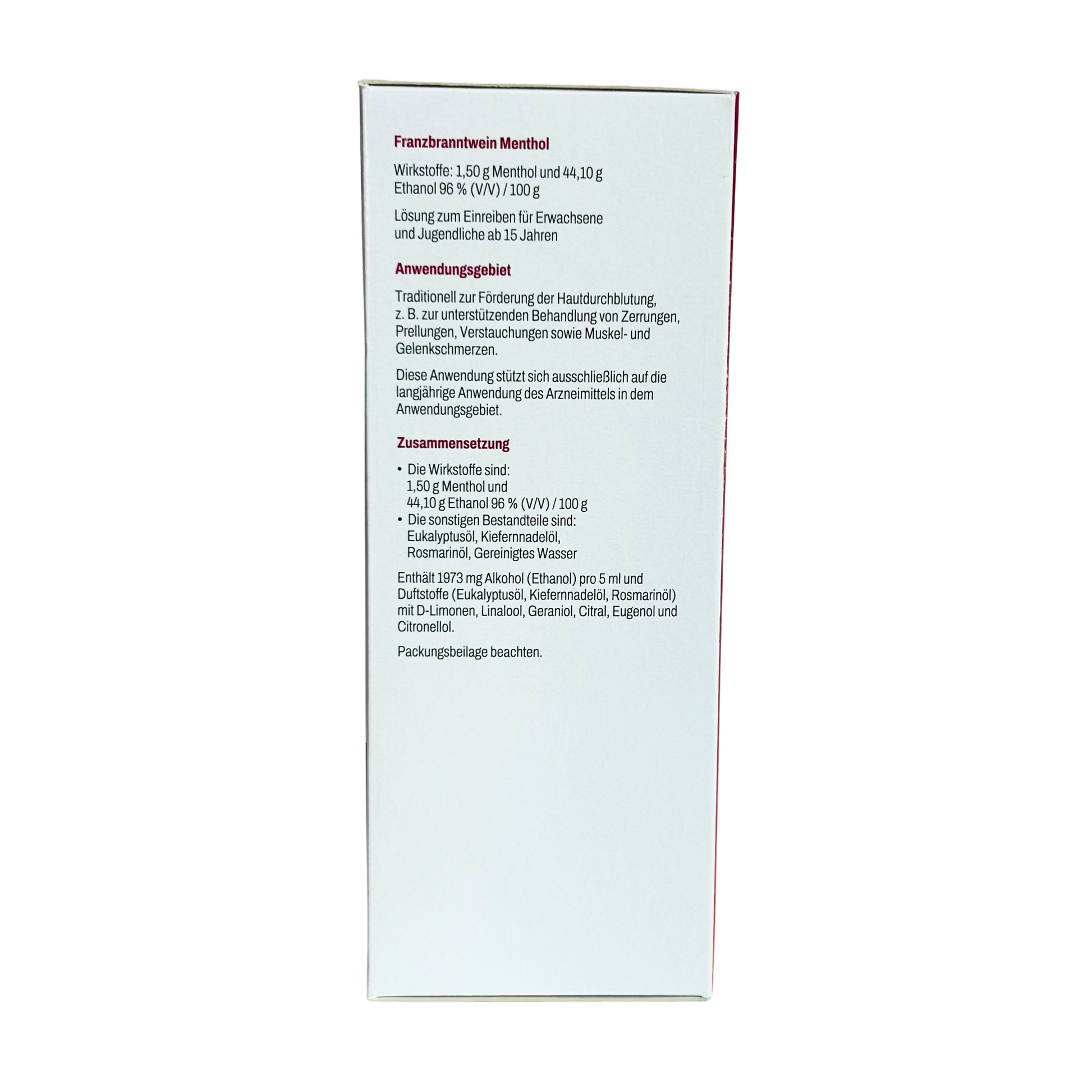 Franzbranntwein Menthol von BlumenBerg eignet sich zur äußerlichen Anwendung durch Erwachsene und Jugendliche ab 15 Jahren.