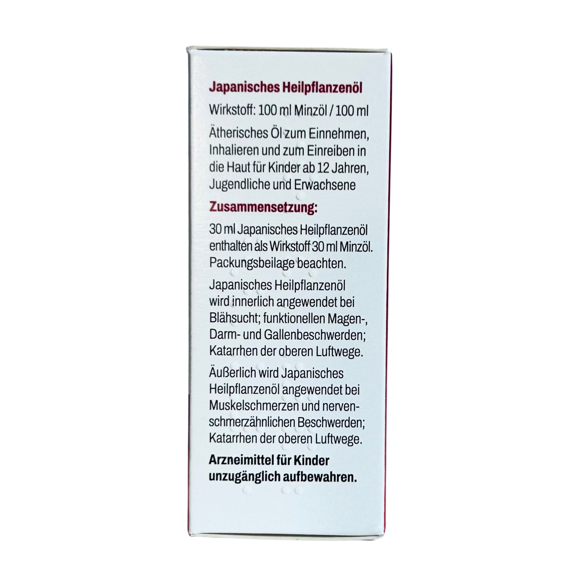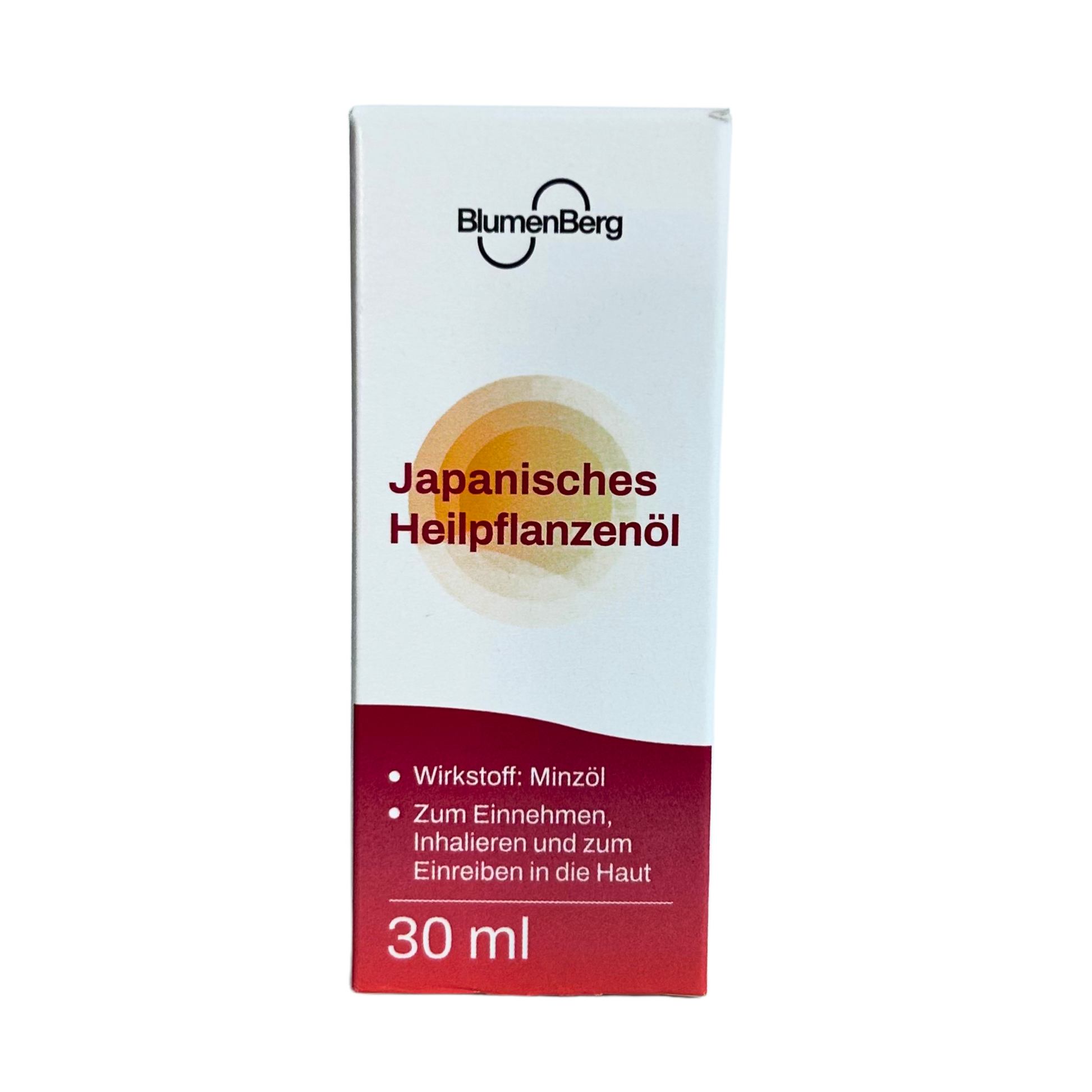 Japanisches Heilpflanzenöl von BlumenBerg ist ein pflanzliches Arzneimittel zur innerlichen und äußerlichen Anwendung z. B.: bei Katarrhen der oberen Luftwege.
